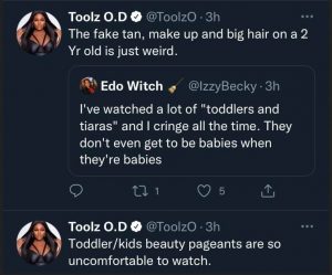 According to Toolz, toddlers/kids beauty pageants are so uncomfortable to watch.