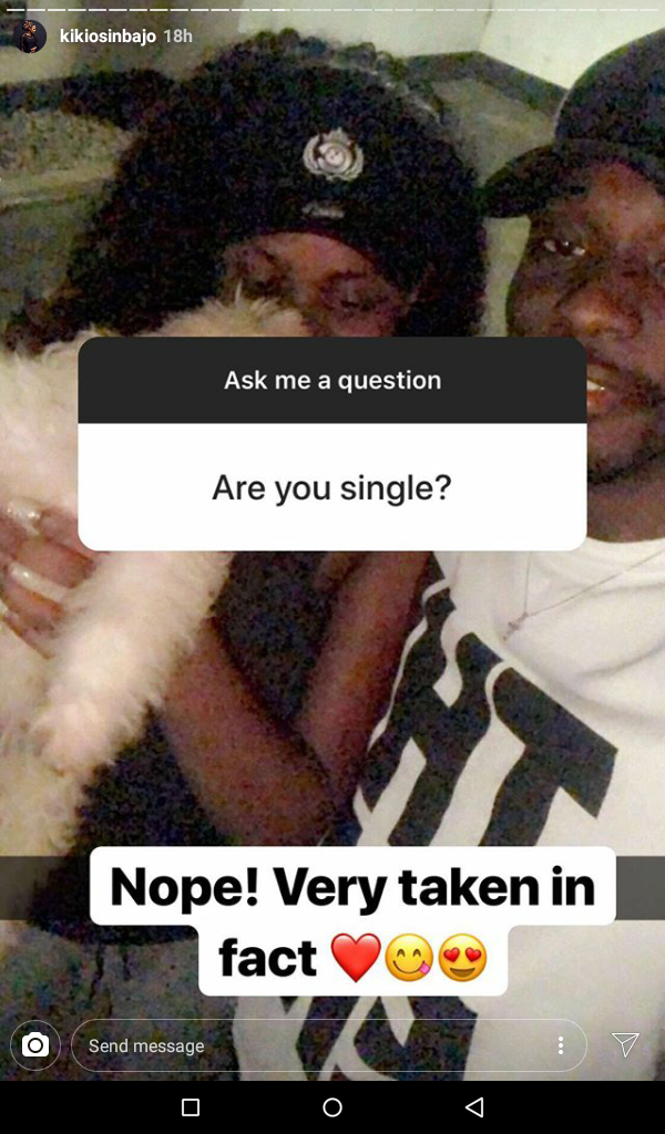In a question and answer session with friends and followers, the 28-year-old posted photo with a handsome young man, adding that she is taken.