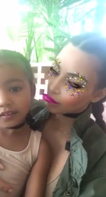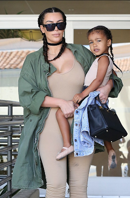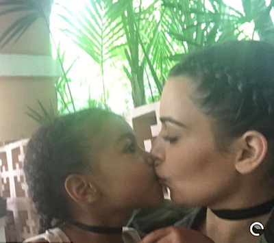 Kim Kardashian shared this beautiful photo with her daughter, North West, wearing matching braids and black neck accessory.