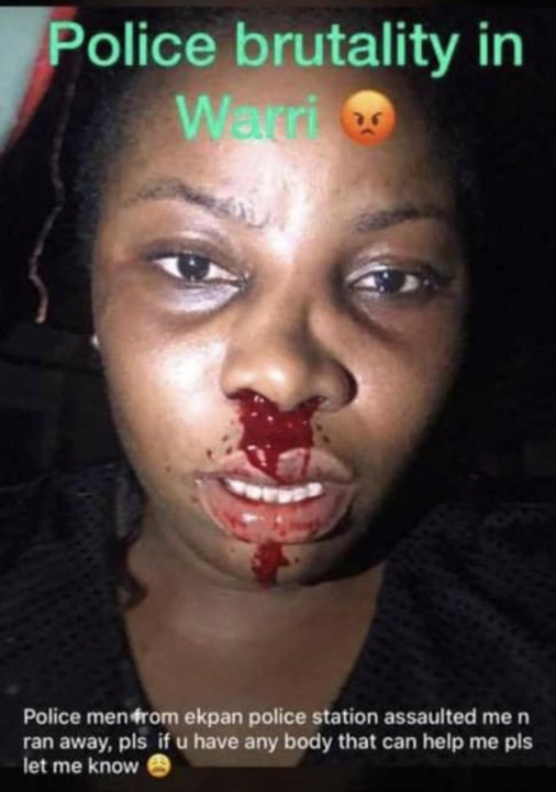 A Nigerian lady simply identified as Rume who is a makeover artist became the recent victim of police brutality after an operative attached to the Ekpan Police Station allegedly hit her face with the butt of a gun and fled the scene with his colleagues after she started bleeding profusely from her nose.