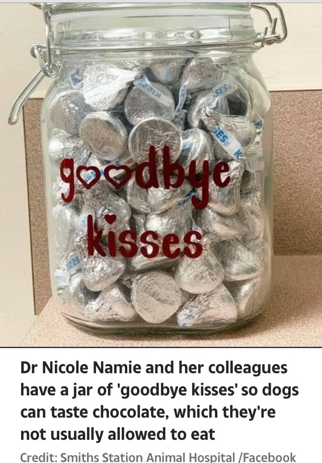 Dr Namie’s caption read: “This jar is reserved for our euthanasia appointments… because no dog should go to heaven without tasting chocolate.”
