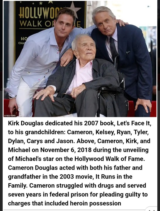 Michael’s wife and Kirk’s daughter-in-law, Welsh actress Catherine Zeta Jones, posted a photo of the two together, writing: “I shall love you for the rest of my life. I miss you already.”