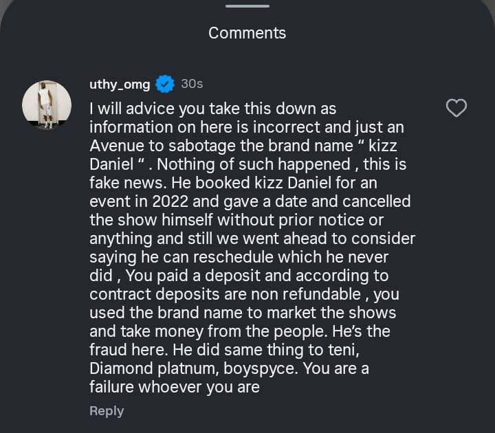 They also threatened legal action against those spreading the rumour, stressing that Kizz Daniel is focused on his music and upcoming shows.
