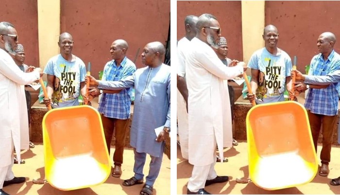A photo which is circulating on social media shows a Kogi man being given a wheelbarrow as part of the state government’s youth empowerment programme.