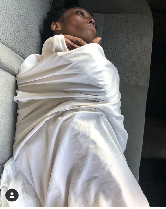 A severely malnourished Unclad woman allegedly dropped off by a car under Jubilee bridge in Ajah, Lago.