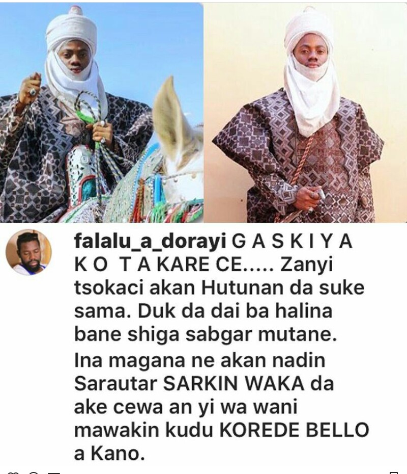 Korede was conferred with the title in recognition to his contribution to the society through music. Dorayi who took to his IG page to express his opinion about the development said there are many indigenous Hausa singers in Kano who deserve the title instead. .