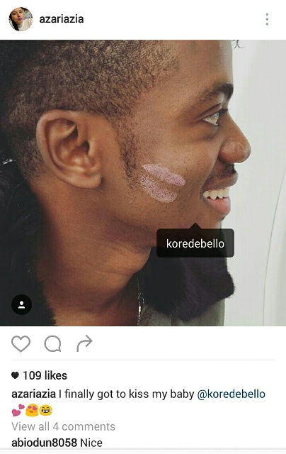 Soon enough, The lady who won Korede’s heart shared the same photo and confirmed she was the one who planted the famous kiss and smeared his face with her lipstick.