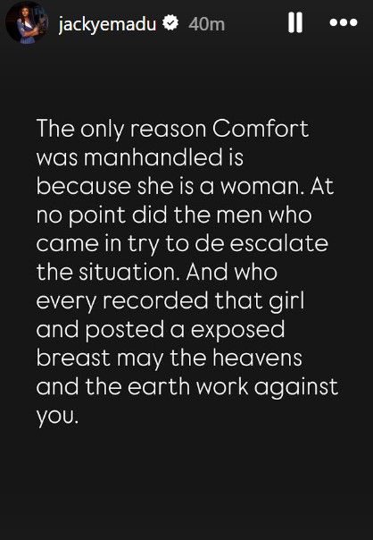 Big Brother Naija star, Jacky Madu has weighed in on the viral incident involving a female passenger identified as Comfort, who was reportedly manhandled by Ibom Air staff after slapping an air hostess.