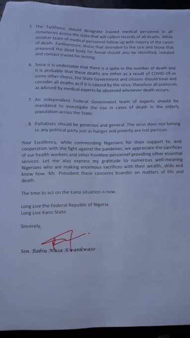 I have written a letter to Mr President on COVID-19 AND THE RISING INCIDENCES OF MYSTERIOUS DEATHS IN KANO STATE: A CALL ON THE FEDERAL GOVERNMENT FOR URGENT ACTION TO SAVE LIVES