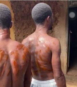 Four men (supposedly Alfas) jointly flogged the students, leaving marks all over their bodies.