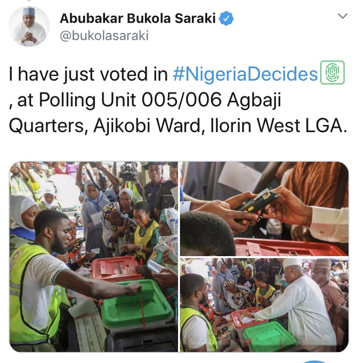 “I thank all Nigerians for their goodwill and to enjoin all of us that as we patiently await the outcome of the Presidential election, we pray for peace, unity and genuine development in our country. It is also our prayers that, at all times, the wish of the people would always prevail in the choice of the leadership and the electorate will always enjoy the benefit of good governance,” Saraki stated.