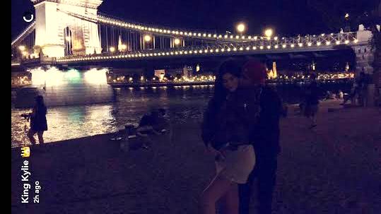 18 year old Kylie Jenner took to her snapchat account to upload a video of her wearing a diamond ring and captioned it ‘bae spoils’ while on a dinner date with on and off boyfriend Tyga.