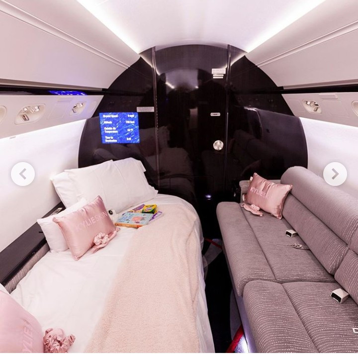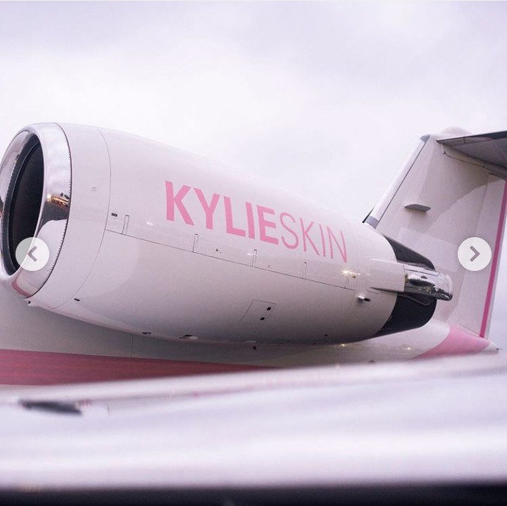 The young “self-made billionaire” took her girls and daughter on a trip in the personalized private jet. Sophia Richie, Draya Michelle and other friends of Kylie’s were dressed in matching pink tracksuits. Kylie and Stormi also wore same pink tracksuits as they took photos outside the pink plane with Kylie Skin written across.