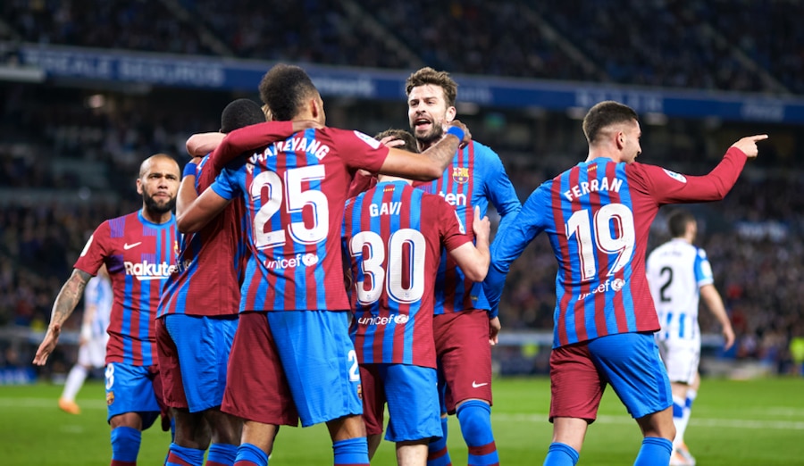 Pierre-Emerick Aubameyabg’s 11th-minute header proved to be the difference in an engrossing 1-0 win for Barcelona against Real Sociedad at the Reale Arena in Sebastian. The Gabonese striker’s 11th goal for the Catalans saw them move back up to second place on the La Liga table on 63 points, the same as Sevilla but separated by goal difference with a game in hand.