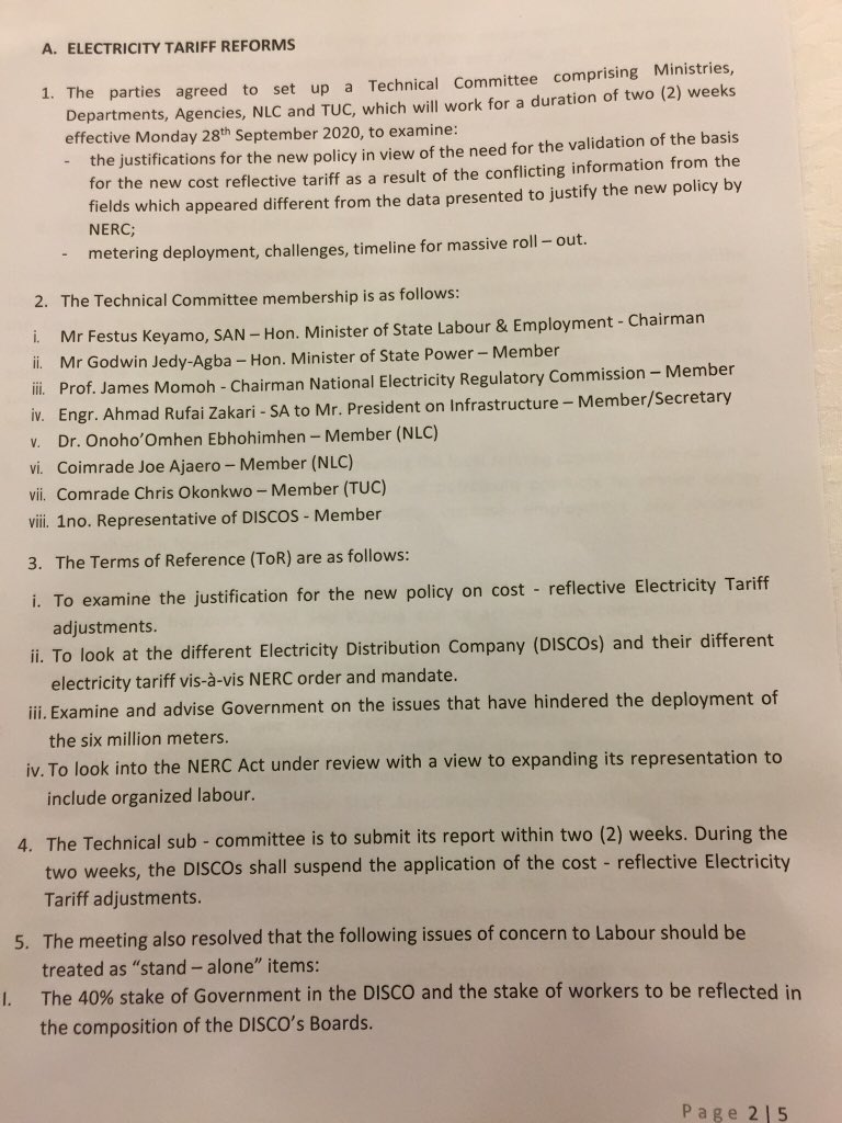 Nigeria Labour Congress, NLC, has suspended its planned nationwide strike that would have started today, Monday, September 28, in protest against the hike in pump price of fuel and electricity tariff.