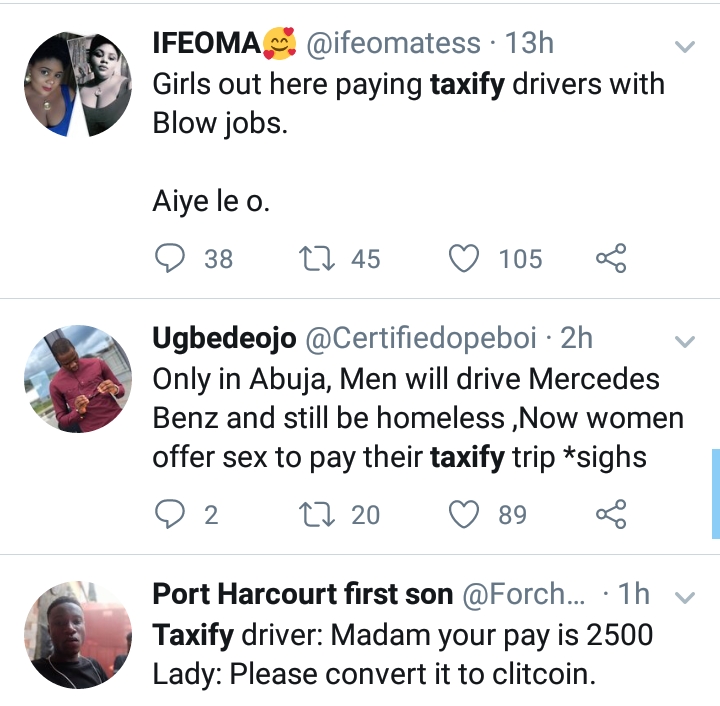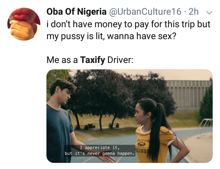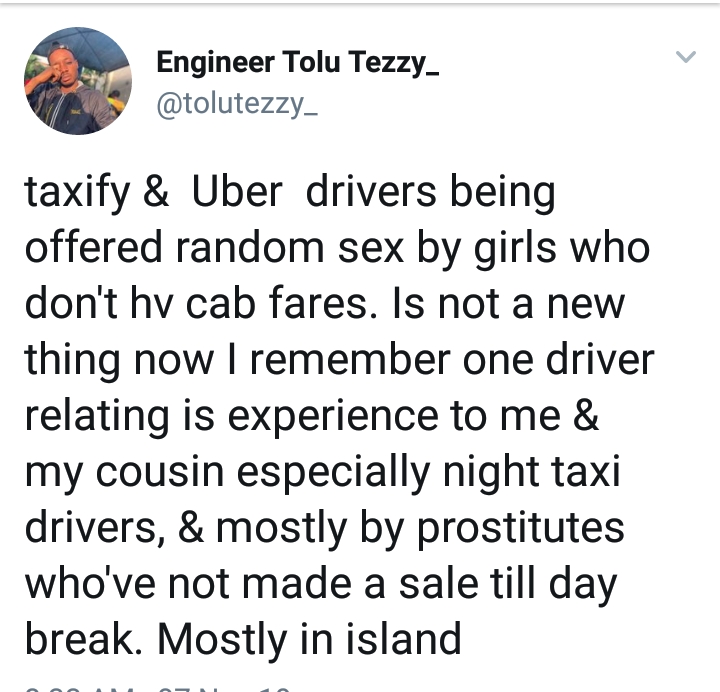 The trending News is that girls are now offering Uber and Taxify driver sex to pay for their trip.