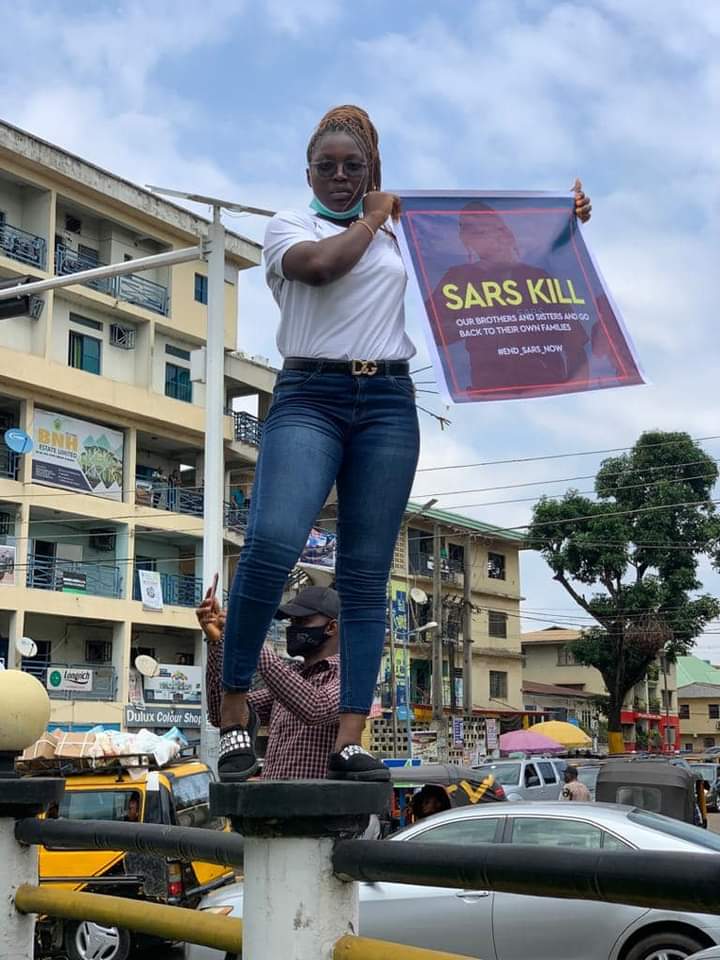 Ladies Pose With Their ENDSARS Placards In Onitsha