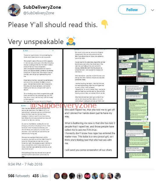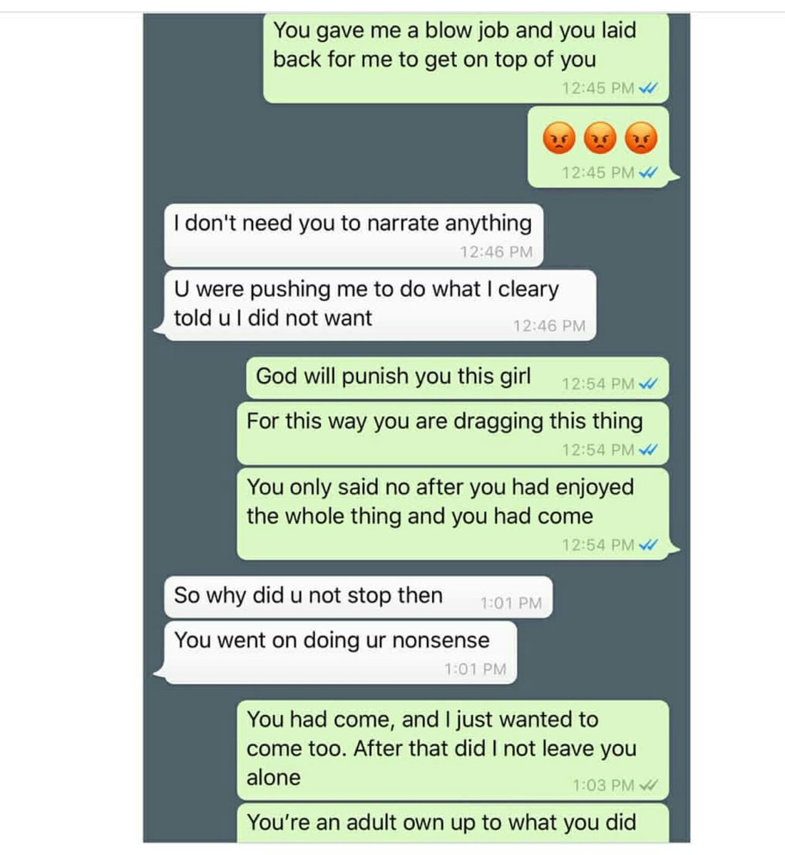 Now according to the guy the both of them works in same office and had been chatting for a while, so she visited him during the weekend, they smooched and when the time came for the main thing she allowed him pull through, till after she had orgasm she started pushing him to stop.