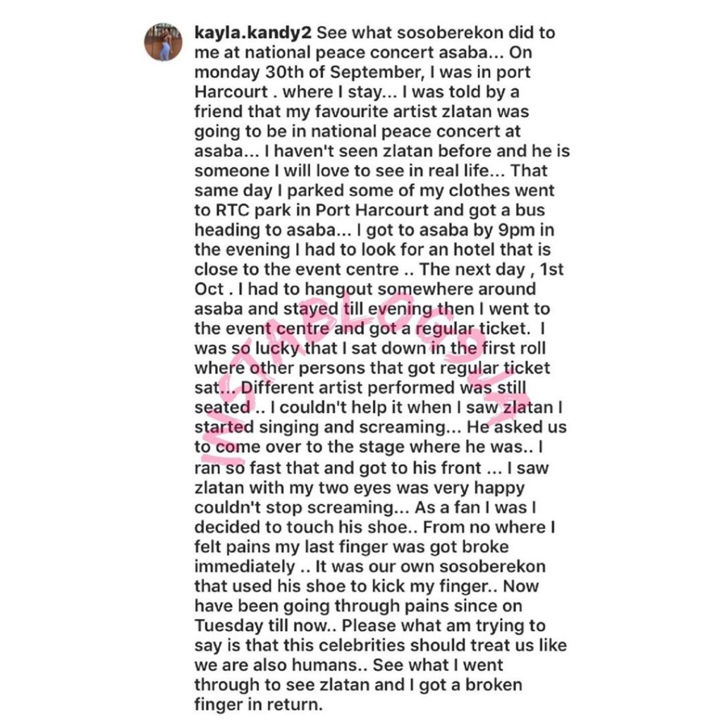 Lady accuses artiste manager, Sososoberekon, of assaulting her for trying to touch ZlatanIbile’s shoe…
