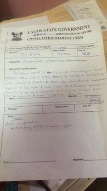 On getting there i tried talking to one of the two nurses on duty and she just sat there staring at me like i was talking to a statue then the other nurse intervened and asked some questions then d first nurse lazily got up to call the doctor who was sleeping at that time. It was already 20mins and he wasn’t coming out then when i raised my voice and the nurses were even raining insults saying i should have taken him to a private hospital instead, then Dr. Olatunji finally came out. He wrote a prescription of only Maxolone ( for vomiting) and paracetamol so i asked him if he wont give my nephew any infusion (drip) as he was totally dehydrated he didn’t answer and the nurse said i shouldn’t teach him his job. He now later said they wont be able to manage my brother there and that they will have to refer so i said even if you will refer, wont you at least rehydrate him just to make him a bit strong and also stop the pains in his thighs, he said theres nothing else he can do. Dr olatunji then referred us to Randle General hosp. So we had to leave the hosp for our house at about 1:40 am thinking the drug they gave will surpress the vomiting but it became worse and about 5am, i rushed him to randle where they took the case as a serious medical emergency because he was almost going! Doctors and nurses are supposed to save people but some are killing people everyday! The staffs on night duty at the Ebute-Metta Health centre from 3rd September to 4th september 2016 must not go unpunished!”.