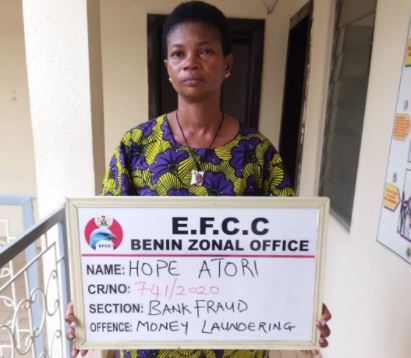 A woman identified as Hope Aroti has been arraigned in court by officials of The Economic and Financial Crimes Commission, EFCC, Benin Zonal Office on Wednesday, March 3, 2021 before Justice Emeka Nwite of the Federal High Court sitting in Warri, Delta State.