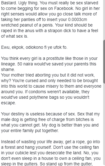 A lady on Facebook has gone Ballistic on a man, as she released Missile of curses on him for sending her friend request after he insulted her sister for refusing to Take 10k to satisfy his uncontrollable urge..