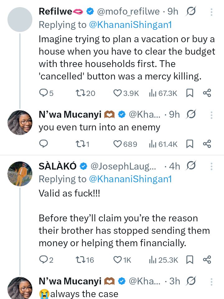 A South African lady, Khanani, has revealed that she cancelled a date with a man after she found out that he is the family breadwinner and his three sisters are unemployed.