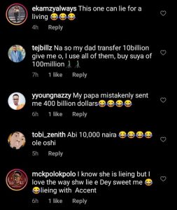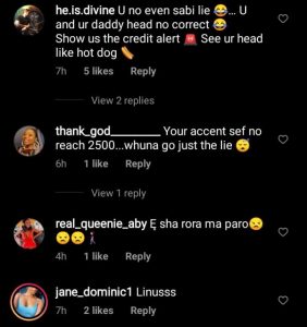 Many took to the comment to claim the young lady was lying, most asking for the credit alert proof.