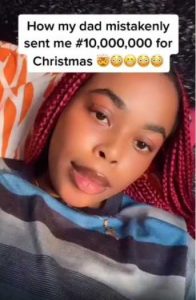 A young lady has been ‘the talk of the town’ on social media after she claimed her father mistakenly gave her N10 million for the Christmas celebration.