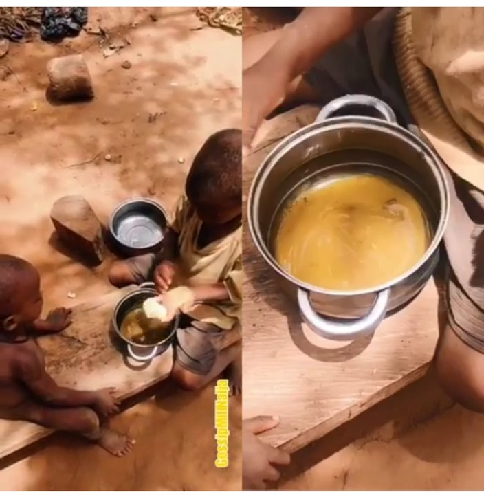 Nigerian lady cries out on Instagram after spotting some little kids eating Garri(eba) with dirty water as soup in Delta State!!!
