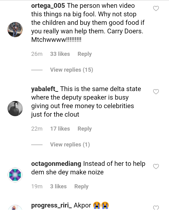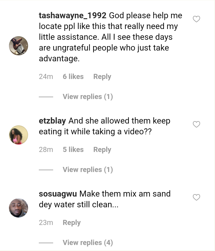 Many did not find it good in what the lady did and some said God will punish the person that took this video instead of them to help remove the dirty water and they allowed them to be eating it like that.