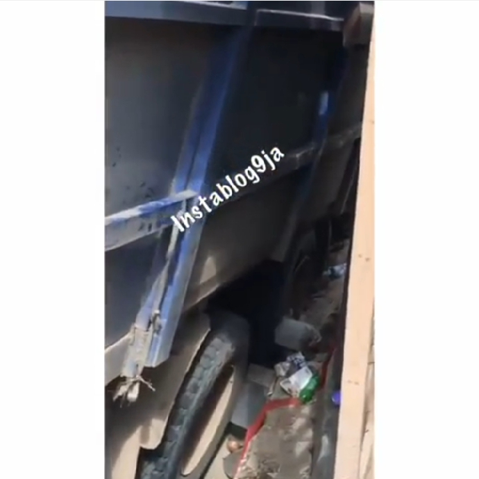 Lady crushed to death in front of her shop as trailer suffers brake failure, today, in Ogba, Lagos…