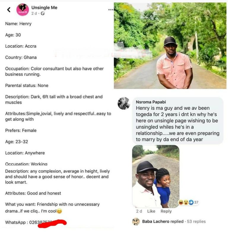 On seeing his post, his heartbroken fiancee exposed him on the group, saying they’ve been dating for two years and preparing for their wedding this year.