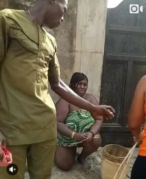 In a trending video making rounds online, the said lady was mercilessly flogged by the wife for not just cheating with her husband, but for tying her expensive wrapper on her body.