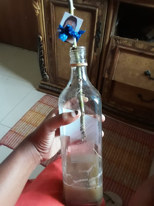 What could this mean? This was the question being asked by a South African lady who shared a picture on twitter of her self inside a bottle in her friend’s closet.