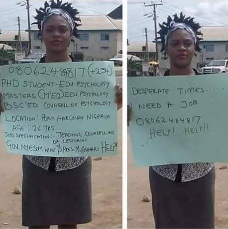 lady looking for a job on the streets of Port Harcourt (see photos)