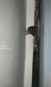 In the video, the rat could be seen suspending in the air as it squeezed itself inside a tiny space.
