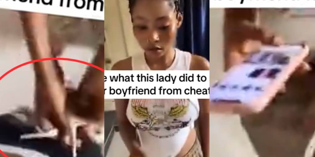 A Nigerian lady has sparked reactions online after tying her boyfriend’s trouser with a rope, securing it with a padlock, and taking photos to prevent him from cheating.