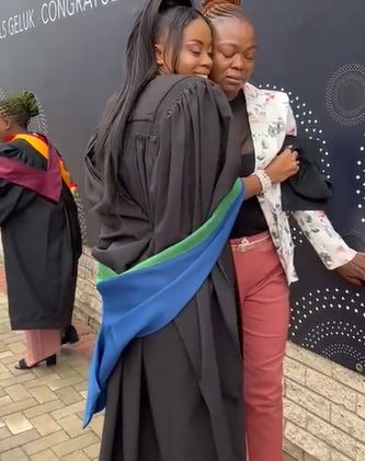 The lady graduated from Nelson Mandela University and her mother shed tears of joy as she kept embracing her daughter.