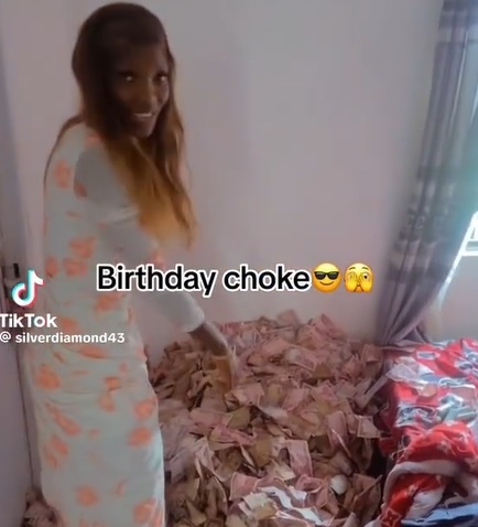The excited lady took to TikTok to share the video with the caption “birthday choke”.