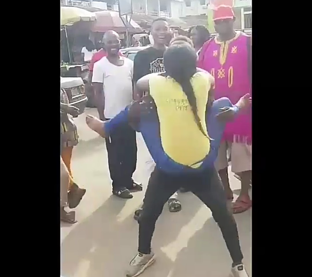Nigerian man (Dancer) receives hot slap after disrespecting and rough handling a female passerby he begged to dance with him.