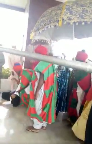 A lady slumped on seeing the Emir of Kano Mahammadu Sunusi II, she was saying “Alhamdulillah yau Naga Sarki” which will be roughly translated as “Thank you God I seen the Emir today.” Gistvic Reports.