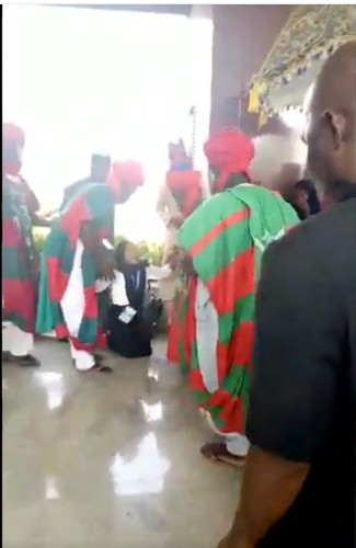 She was assisted back on her feet as she continue saying “Alhamdulillah yau Naga Sarki”.