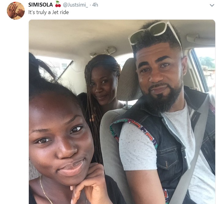 The lady who was excited when he picked her up shared a photo with him and posted on Twitter. She wrote;