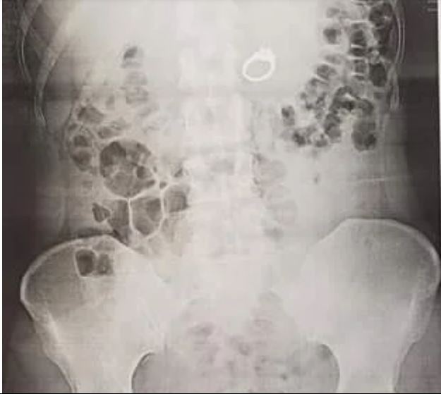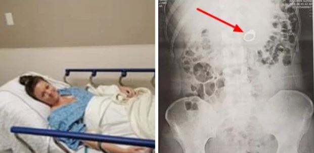 I went to urgent care where I struggled to explain why I was there, because I was laughing/crying so hard. The doctor ordered an Xray and seemed pretty shocked when she walked back in with a second doctor and showed me that sure enough, my ring was right there in my stomach!