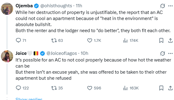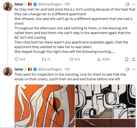 It was gathered from @Joiceoflagos’s report that the lady had rented an Airbnb but complained of the AC not cooling enough.