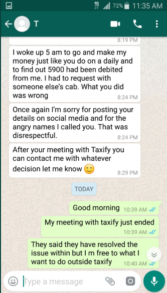 Justice, the Taxify driver who was accused of theft and fraud some days ago by a customer, has decided not to sue her anymore after she sent him an apology.