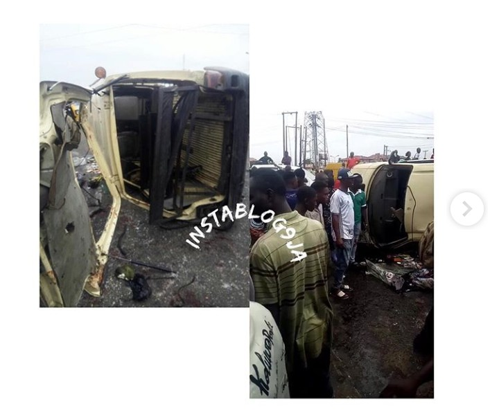 Lady’s leg cut, others seriously injured as a Danfo driving against traffic collides with a truck, today, at Cele bustop, Lagos…