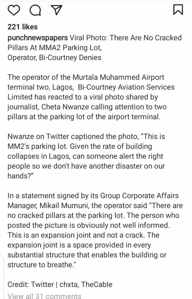 Earlier, a picture of allegedly cracked pillars at the parking had surfaced on social media, raising fear among airport users and other Nigerians.