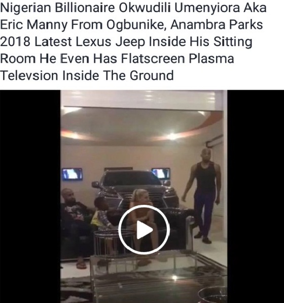 Nigerian Billionaire Okwudili Umenyiora Aka Eric Manny From Ogbunike, Anambra Parks 2018 Latest Lexus Jeep Inside His Sitting Room He Even Has Flatscreen Plasma Televsion Inside The Ground.